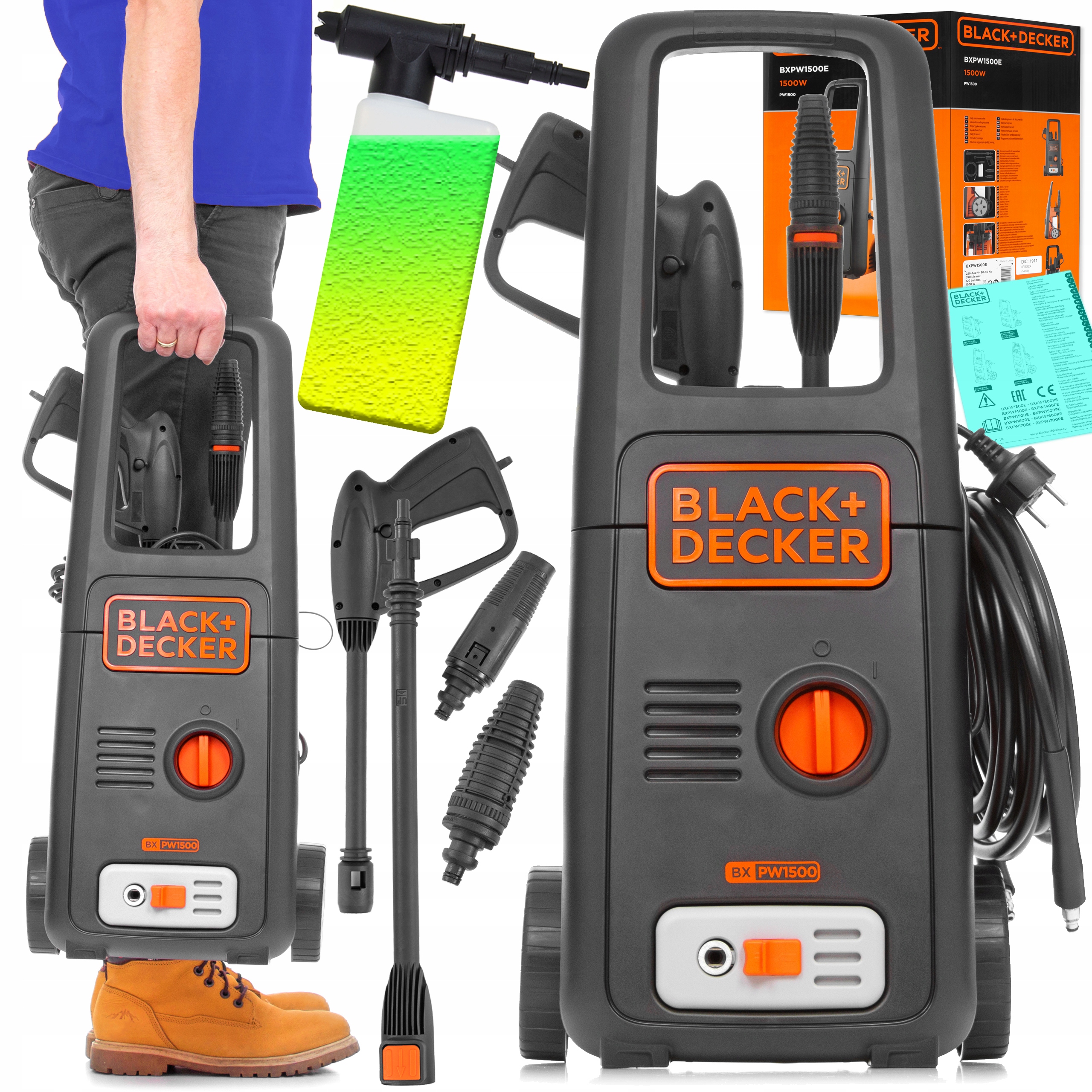 1500w high pressure washer with mini patio cleaner and fixed brush bxpw1500pe.