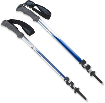 The black diamond distance plus flz trekking poles is unique in that it is composed of an upper section that is actually three nested aluminum tubes and then a lower portion that consists of two aluminum pole sections connected to the inner tube of the upper section by a shielded kevlar cord.