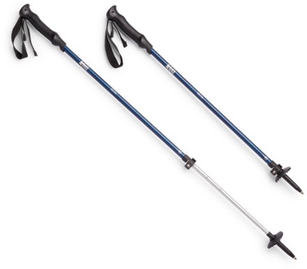 The black diamond trail explorer trekking poles offer simple support for day hikes and backpacking.